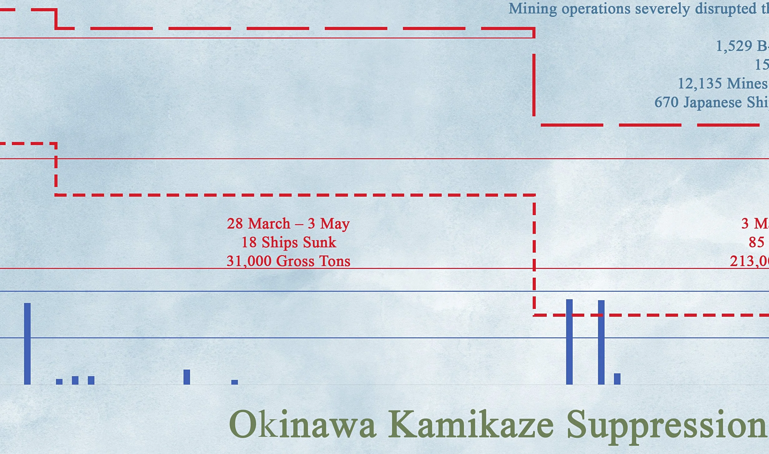Also included are the sea mining operations conducted by the B-29s. The mining operations had a disastrous effect on Japanese maritime shipping. This prevented the movement of food and all other necessities across Japan.